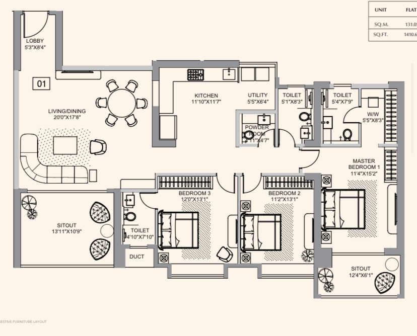 3BHK – 1664 SQFT
